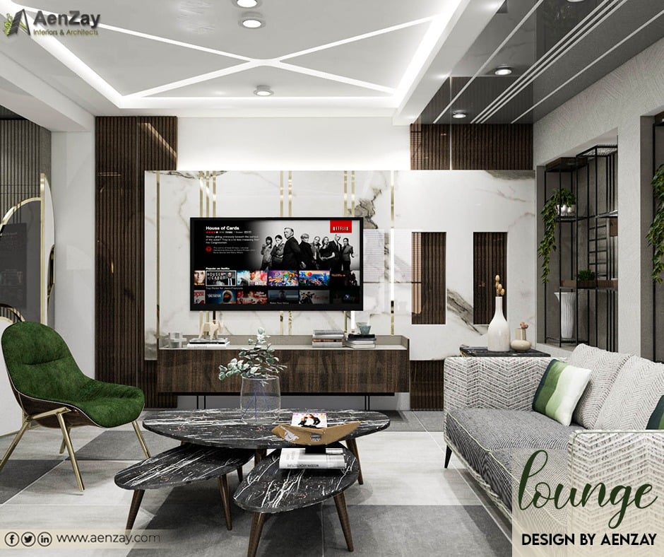 The glow, patinas, and regular surfaces of fine hardwoods, normal or refined stone, and metals are immensely significant parts of our plan range at AenZay DHA Lahore, and they are generally similarly at home in a contemporary media divider plan.