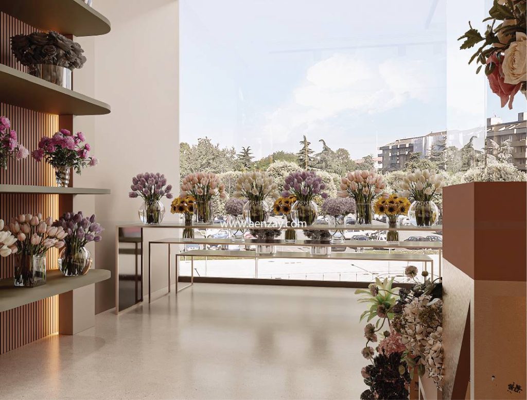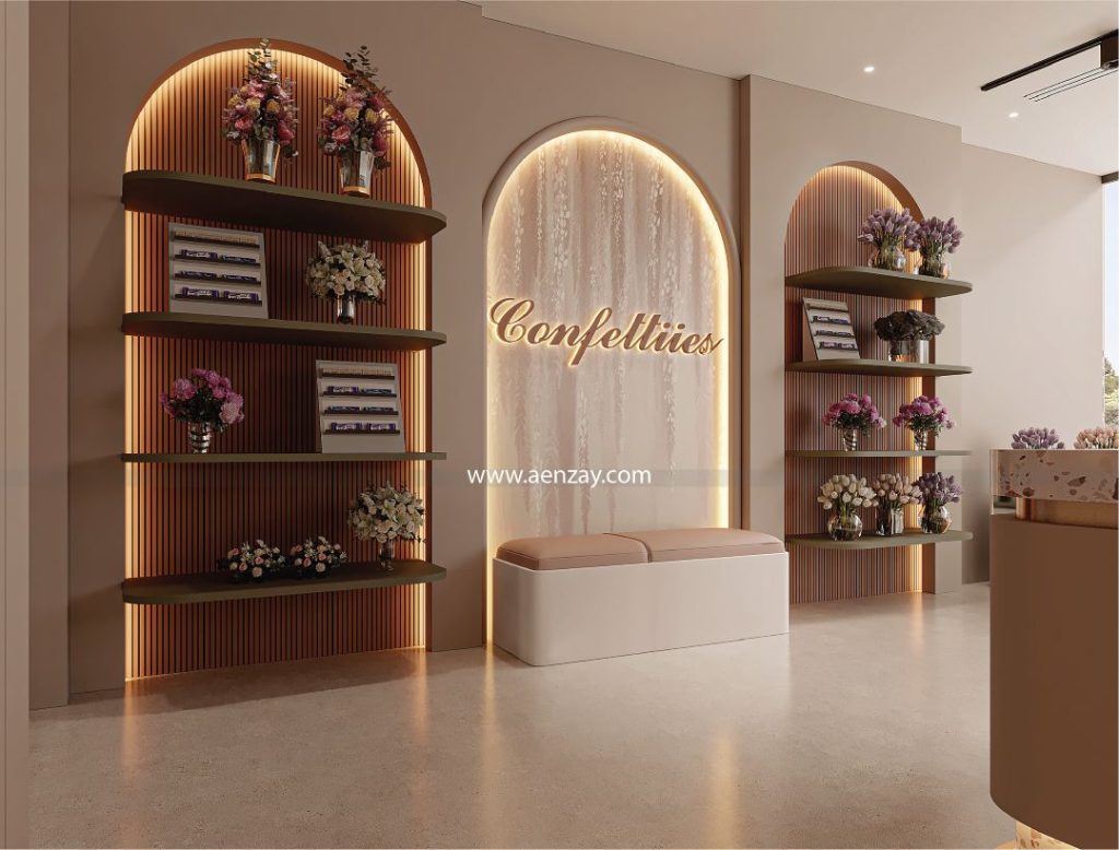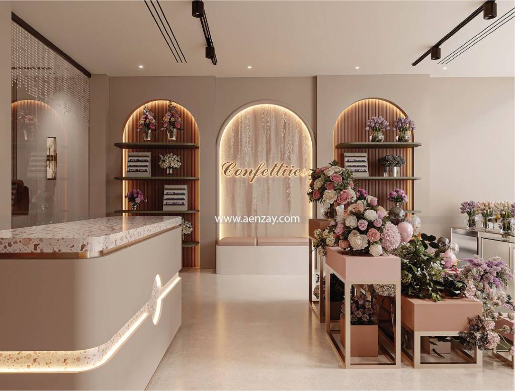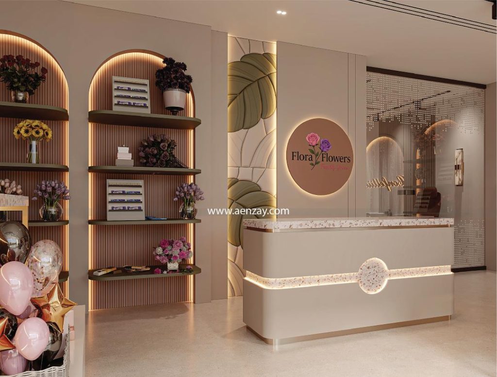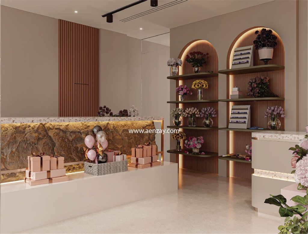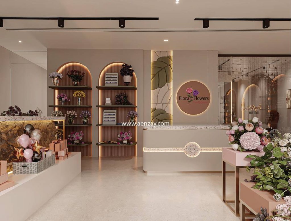 A Floral Paradise designed by AenZay Interiors & Architects. AenZay thoughtfully designed this Floral shop interior to bring nature, Beauty, and emotions together in one place. This Flora flower shop features soft pastel tones, wooden textures, and inviting lighting that reflect the freshness of nature in a modern and boutique retail setting. Our vision was to design a floral shop where every color, fragrance, and petal could breathe freely. With thoughtful detailing, we created a minimal yet heartfelt interior that allows customers to connect emotionally with the beauty of flowers.