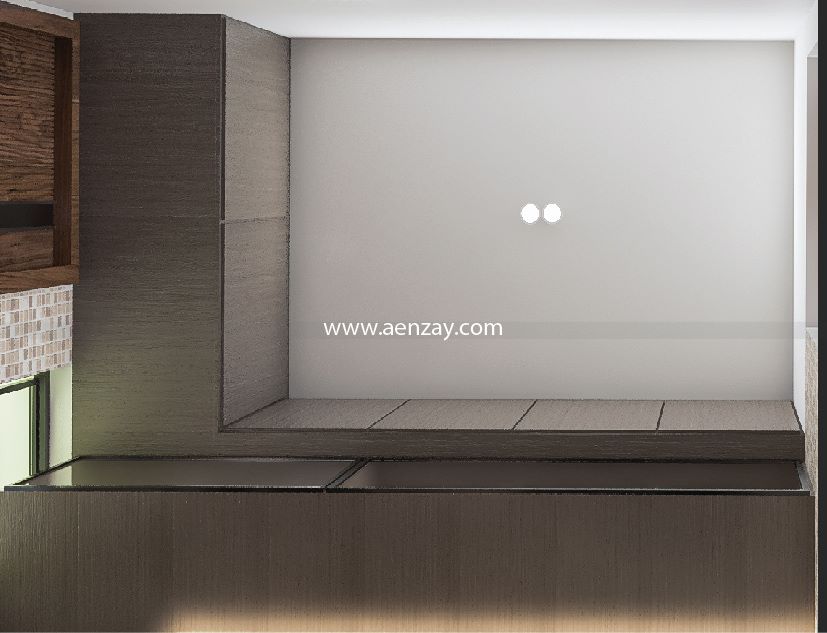 The bathroom is simple but showcases AenZay’s understanding of a modern house. Ambient lighting with textured tiles & modern fixtures gives practicality with a minimalist look.