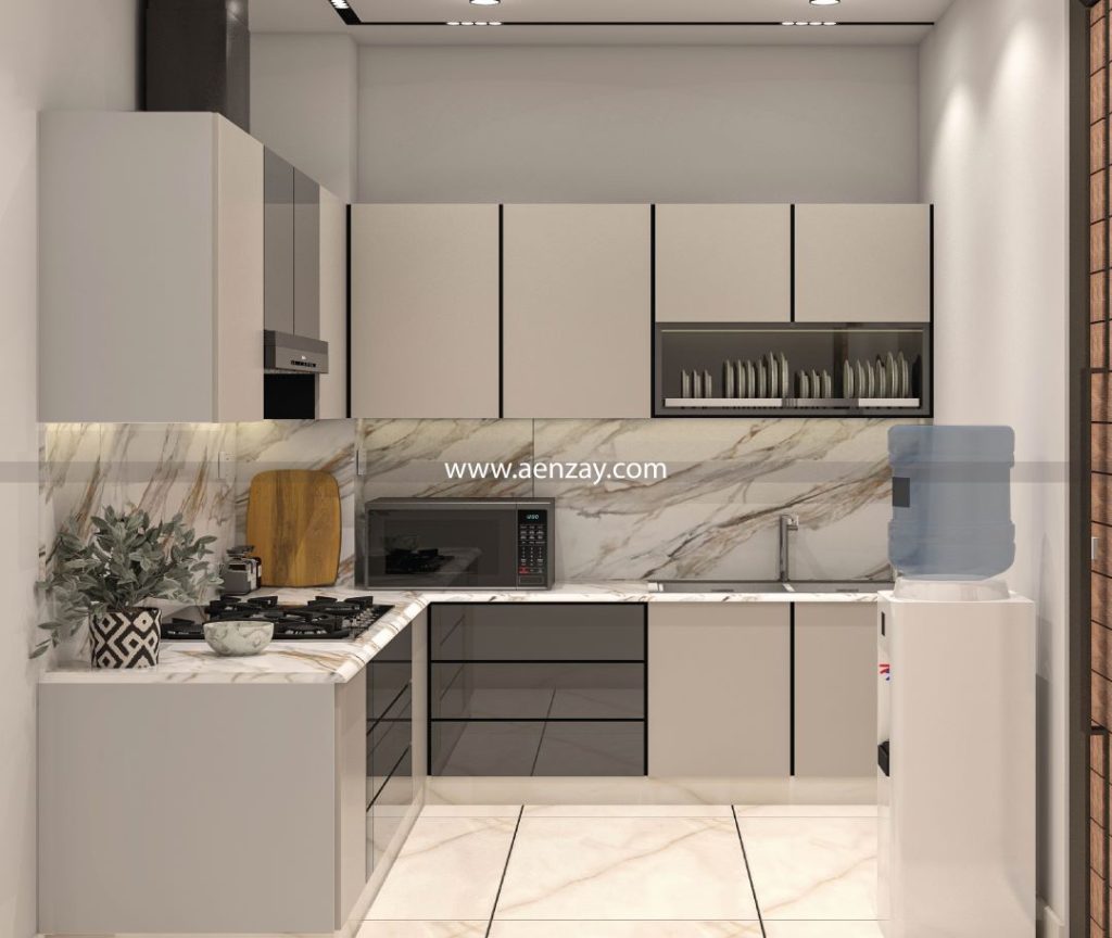 This Kitchen has been planned to cater to the day-to-day usage of the office employees with an efficient and convenient design. Everything has been put at its appropriate place with the use of cabinets, marble counter tops, and appliances in a systematic manner. All kinds of clutter have been minimized with the result that one can move easily within the area without any hindrance. It has been planned keeping in view the modern office design Gujranwala.