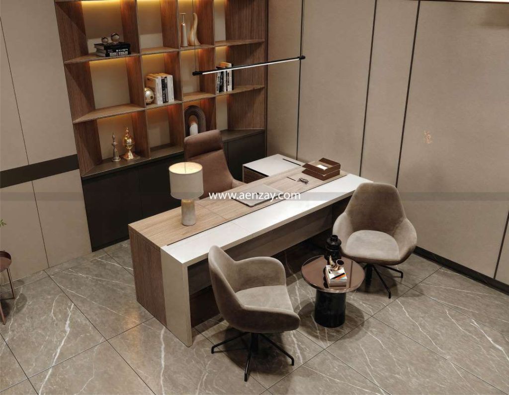 The CEO’s office creates an impression that is both commanding and cozy. The arrangement of a clean desk along with ergonomic seating makes up the core of the office. A shelf with backlighting brings dimension into the design and enables the addition of discreet decorations. Warm floors, walls, and appropriate lighting enhance the interior. It reflects a refined approach to executive interiors within modern office design Gujranwala.