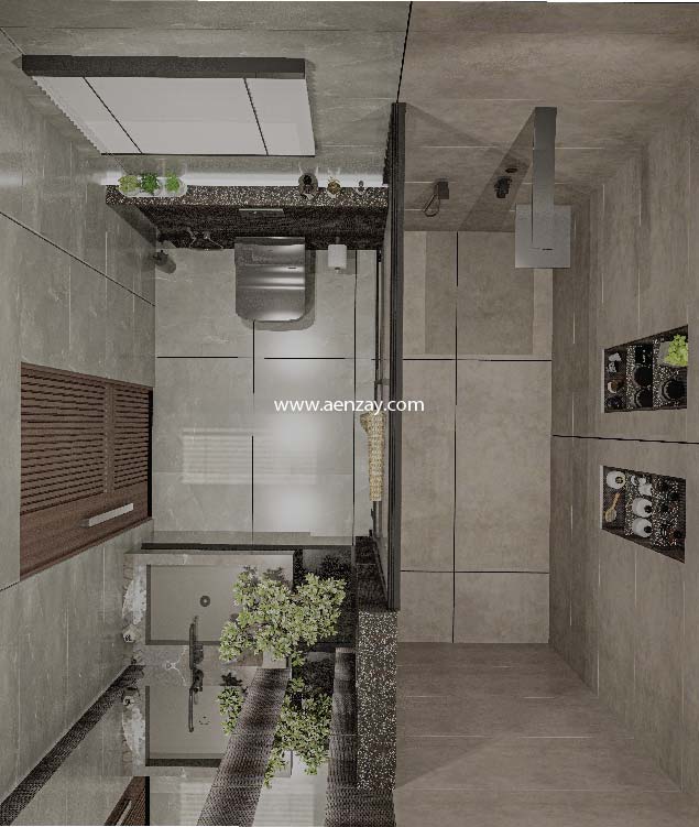 This Modern design kitchen is a blend of style and functionality. AenZay designed it with a modern approach, featuring clean lines, sleek cabinets, and high-quality finishes that create a fresh and organized look. Built-in appliances, such as the oven, microwave, and stove, are designed to fit seamlessly for a sleek, modern appearance.