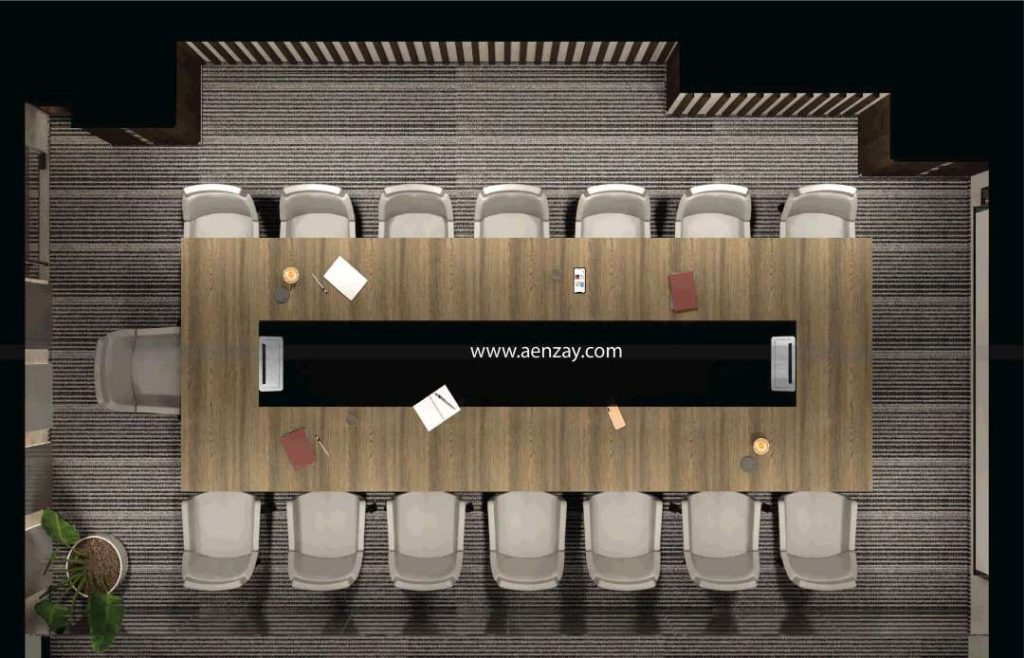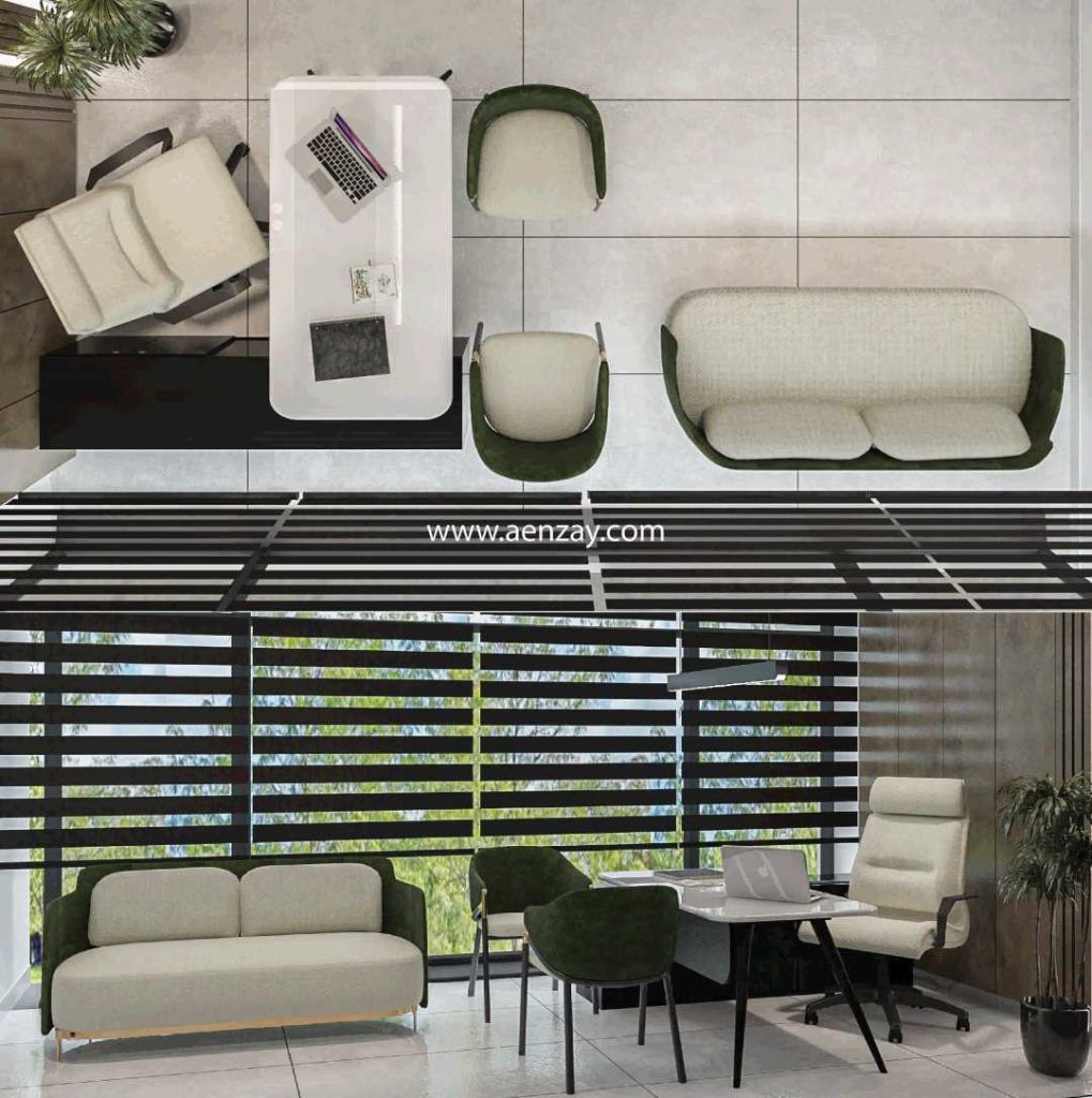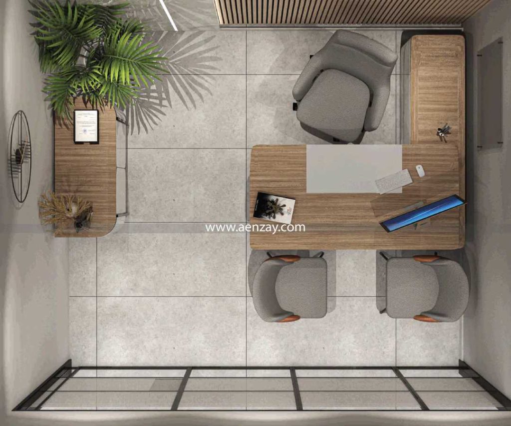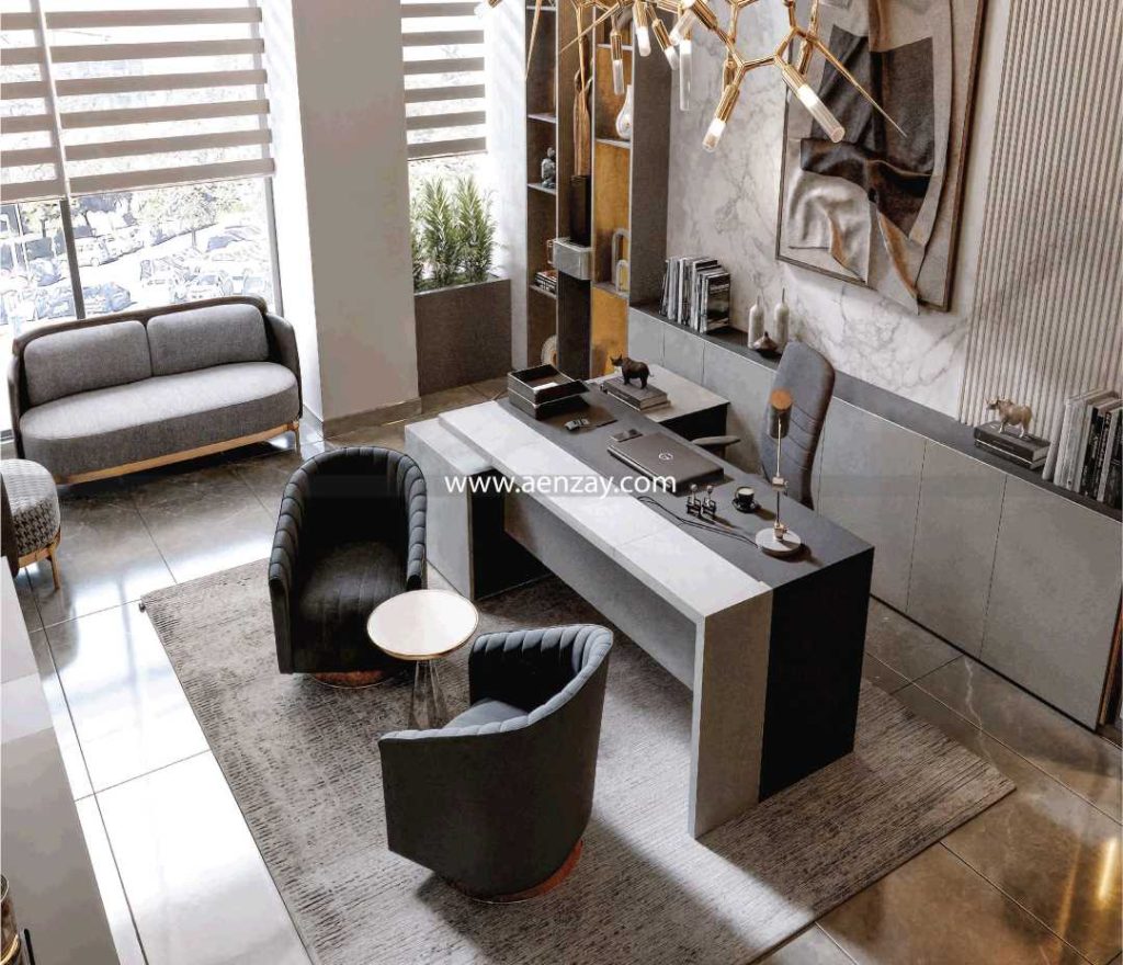 AenZay designed this space as a corporate office interior design lahore setting that reflects strong leadership and a clear sense of presence the large desk with refined seating creates a space that feels both commanding and welcoming for meetings and daily decisions black marble accents soft lighting and built in shelving add depth and a sense of structure while natural light and greenery keep the space balanced and comfortable this luxury office interior design lahore approach reflects a modern office interior project pakistan where authority style and function come together in a practical way