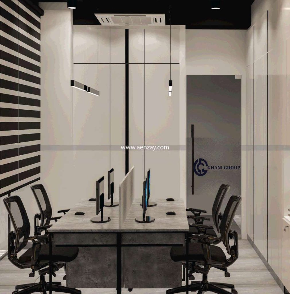 At Aenzay, we combine aesthetics and innovation to redefine office interior design in Lahore. Ghani Glass Project of 1500 sqft have clean modern lines which reflects modernism in style and elegance. This workspace consists of aesthetics & functionality offering a space which encourages to focus and improve creativity and collaboration around the office